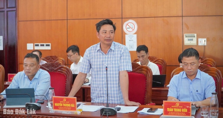 Trưởng ban Tổ chức Tỉnh ủy Nguyễn Thượng Hải phát biểu thảo luận tại phiên họp.