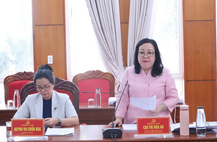Đồng chí Cao Thị Hòa An – Phó Bí thư Thường trực Tỉnh ủy, Chủ tịch HĐND tỉnh phát biểu tại hội nghị.