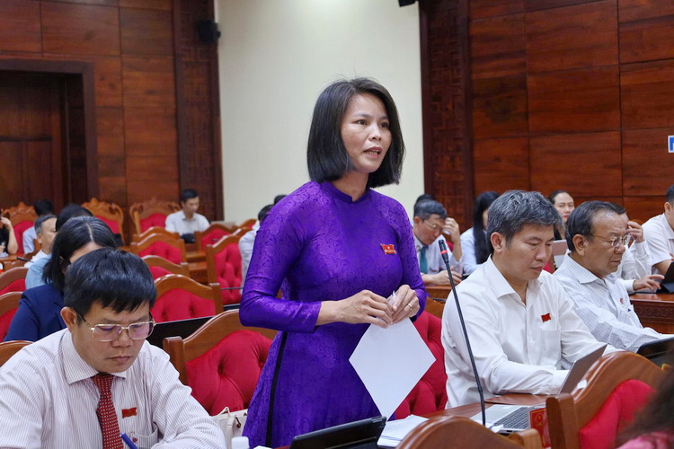 Đại biểu Tạ Thị Thu Hương, Phó Trưởng Ban Văn hóa - Xã hội, HĐND tỉnh phát biểu thảo luận tại kỳ họp.