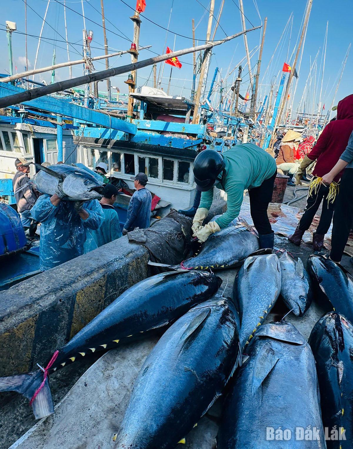 Cá ngừ đại dương cập cảng Đông Tác - phường Phú Yên.