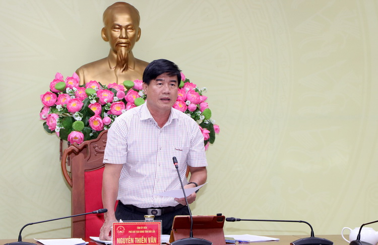 Đồng chí Nguyễn Thiên Văn - Phó Chủ tịch UBND tỉnh Đắk Lắk báo cáo tại phiên họp.