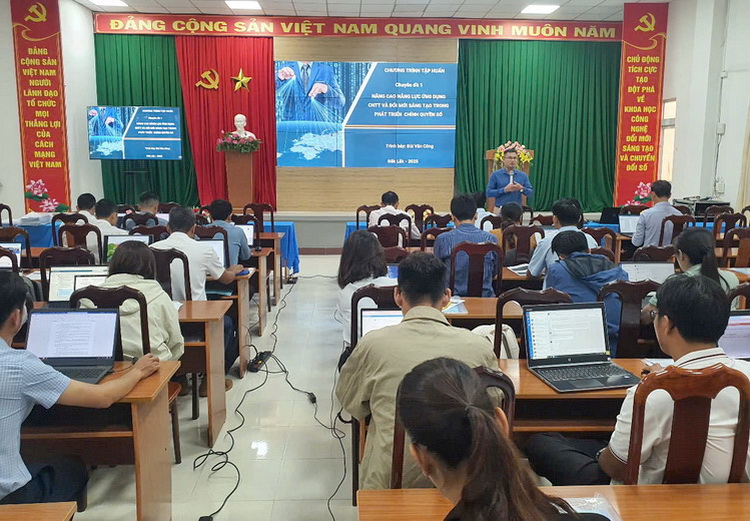 Đây là lớp thứ 02 trong 04 lớp của Khóa 02, được tổ chức trong 02 ngày, từ ngày 09 - 10/10/2025 với hơn 88 học viên tham gia. Nội dung tập huấn bao gồm 03 chuyên đề chính: Nâng cao năng lực chuyển đổi số trong phát triển chính quyền số; Ứng dụng AI hỗ trợ công việc chuyên môn; Hướng dẫn vận hành, sử dụng phần mềm quản lý văn bản và điều hành (iDesk) phục vụ mô hình chính quyền địa phương 02 cấp, hướng dẫn xử lý các lỗi thường gặp. Lớp bồi dưỡng, tập huấn do Tiến sĩ Bùi Văn Công, đến từ Viện Công nghệ Thông tin, Đại học Quốc gia Hà Nội truyền đạt.