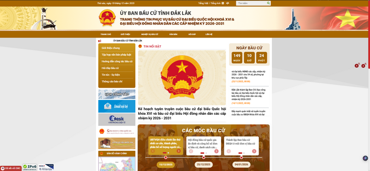 Trang thông tin phục vụ bầu cử đại biểu Quốc hội khóa XVI và Đại biểu Hội đồng nhân dân các cấp nhiệm kỳ 2026-2031 tại địa chỉ https://baucu.daklak.gov.vn/.
