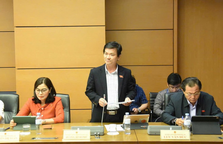 Đại biểu Dương Bình Phú - Đoàn đại biểu Quốc hội tỉnh phát biểu thảo luận tại tổ (Ảnh: Đoàn đại biểu Quốc hội tỉnh cung cấp).
