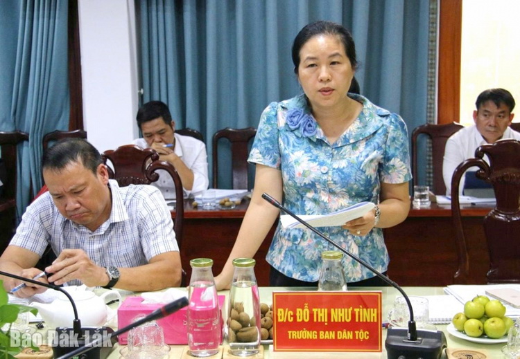 Trưởng Ban Dân tộc HĐND tỉnh Đỗ Thị Như Tình phát biểu tại buổi làm việc.