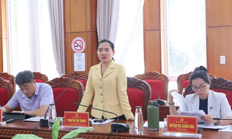 Trưởng Ban Tuyên giáo và Dân vận Tỉnh ủy Đinh Thị Thu Thanh phát biểu tại hội nghị.
