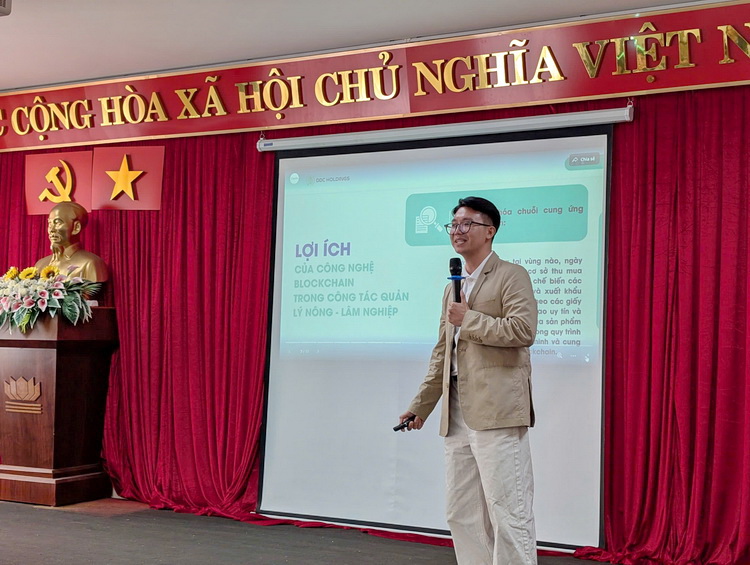 Ông Nguyễn Hắc Hiển - Chi cục Trưởng Chi cục Trồng trọt và Bảo vệ thực vật, Sở Nông nghiệp và Môi trường tỉnh Đắk Lắk trình bày tham luận “Hiện trạng và nhu cầu ứng dụng công nghệ và dữ liệu không gian trong quản lý nông nghiệp tại Đắk Lắk”