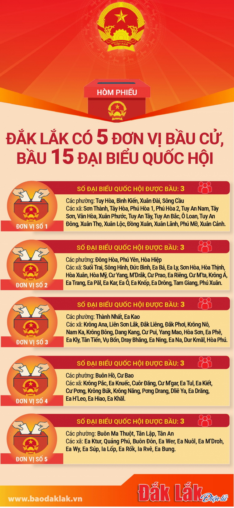 (Infographic) Đắk Lắk có 5 đơn vị bầu cử, bầu 15 đại biểu Quốc hội