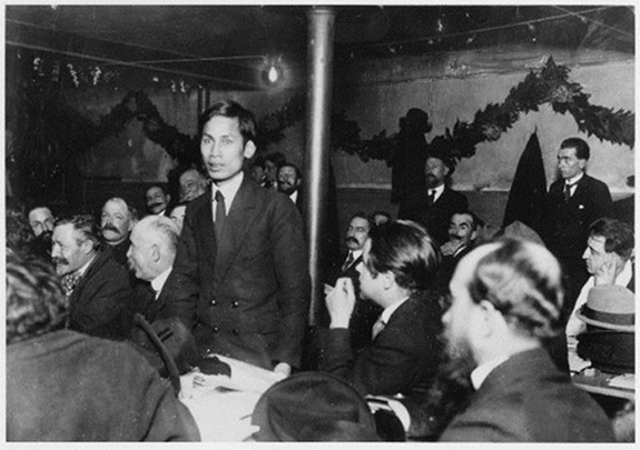 Nguyễn Ái Quốc phát biểu tại Đại hội Tours của Đảng Xã hội Pháp, tháng 12-1920. Ảnh tư liệu/congan.com.vn