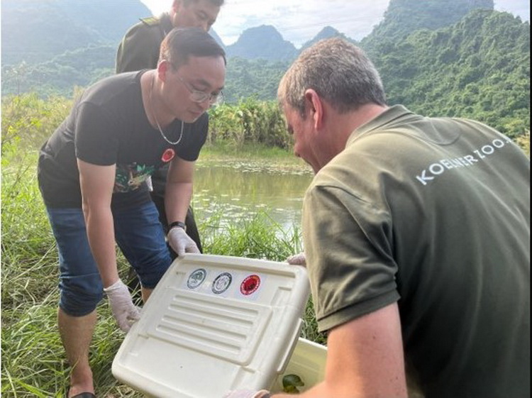 Thả các cá thể ba ba yếm đốm về hồ Tam Chúc, tỉnh Ninh Bình. Nguồn: VAST