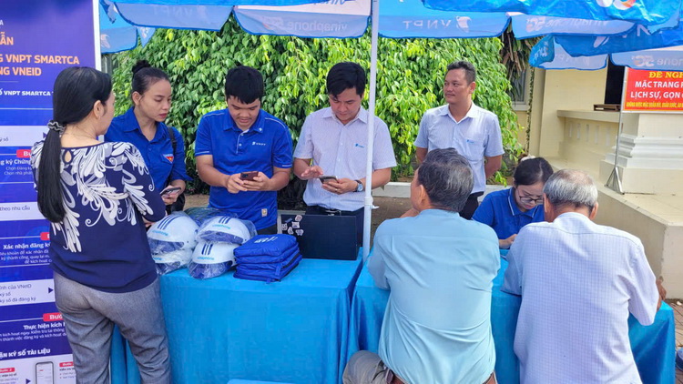 Các doanh nghiệp viễn thông và bưu điện hướng dẫn người dân trải nghiệm các sản phẩm công nghệ số (Ảnh: Lê Hoàng Linh, Phòng Văn hóa - Xã hội Phường Bình Kiến cung cấp)