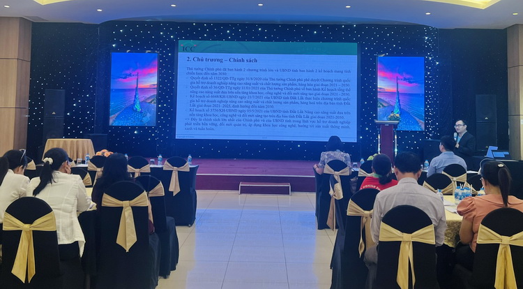 Trong thời gian 1 ngày, hơn 60 đại biểu tham dự được nghe báo cáo viên của công ty TNHH Tư vấn Quản lý I.C.C trình bày bốn chuyên đề trọng tâm: giới thiệu chủ trương, chính sách và các nội dung hỗ trợ doanh nghiệp nâng cao năng suất, chất lượng sản phẩm; trang bị kiến thức tổng quan về các hệ thống quản lý và công cụ cải tiến như ISO 9001, VietGAP, GlobalGAP, 5S, Kaizen, Lean, KPI; chia sẻ kinh nghiệm triển khai thực tiễn tại một số địa phương; và hướng dẫn hồ sơ tham gia các nhiệm vụ KH&CN cấp tỉnh gắn với Quyết định số 1322/QĐ-TTg ngày 31/8/2020 và Quyết định số 36/QĐ-TTg ngày 11/01/2021 của Thủ tướng Chính phủ, đồng thời thảo luận và giải đáp các vướng mắc trong quá trình áp dụng tại đơn vị.