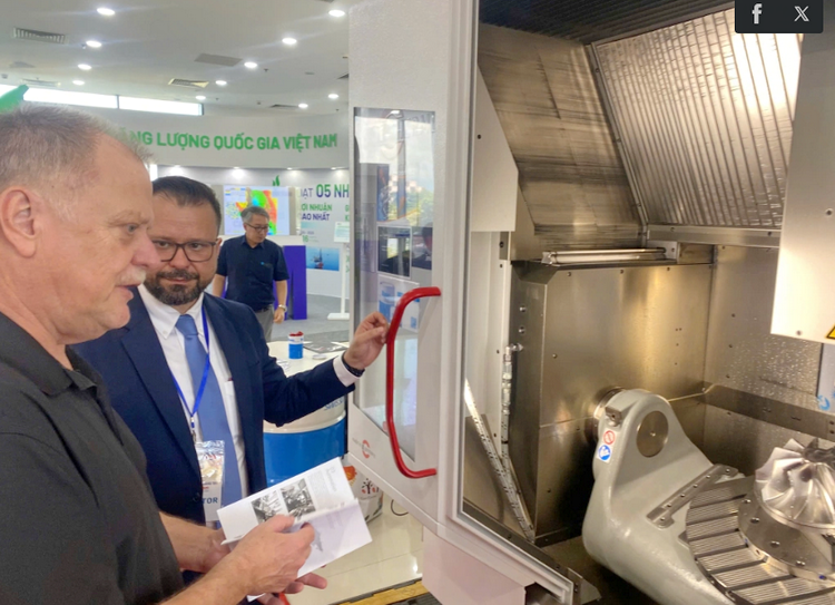 Một trong những điểm thu hút tại triển lãm là sự xuất hiện của một số tên tuổi đến từ Đức. Hermle AG, doanh nghiệp thuộc lĩnh vực gia công chính xác, trình diễn máy gia công 5 trục C400 ngay tại sự kiện. Hãng Walter Tools và Heidenhain trưng bày các giải pháp đồng bộ từ dụng cụ cắt, phần mềm lập trình, đến hệ thống đo kiểm và quản lý dữ liệu, mô phỏng toàn bộ chuỗi giá trị của một nhà máy thông minh.