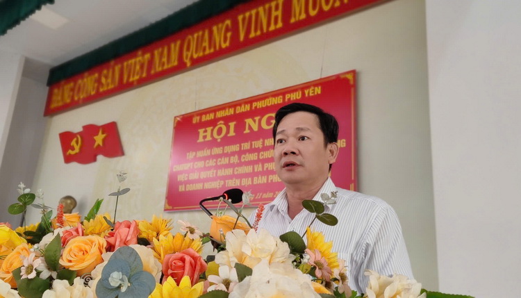 Phát biểu khai mạc, ông Nguyễn Hồ Bảo Khôi, Ủy viên Ban Thường vụ Đảng ủy, Phó Chủ tịch UBND phường Phú Yên nhấn mạnh: Trong thời đại chuyển đổi số, công nghệ trí tuệ nhân tạo (AI) đang trở thành công cụ hỗ trợ đắc lực giúp nâng cao hiệu quả công việc, đặc biệt trong lĩnh vực hành chính công. Việc ứng dụng AI sẽ giúp cán bộ, công chức, viên chức nâng cao năng suất, tiết kiệm thời gian, đồng thời góp phần xây dựng nền hành chính hiện đại, chuyên nghiệp, phục vụ tốt hơn cho người dân và doanh nghiệp.