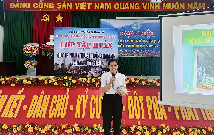Sáng ngày 28/10/2025, Trung tâm Thông tin – Ứng dụng Khoa học và Công nghệ (Sở Khoa học và Công nghệ tỉnh Đắk Lắk) phối hợp với Hội Nông dân xã Tây Sơn tổ chức lớp tập huấn “Quy trình kỹ thuật trồng nấm ăn và nấm dược liệu” cho hội viên nông dân trên địa bàn.