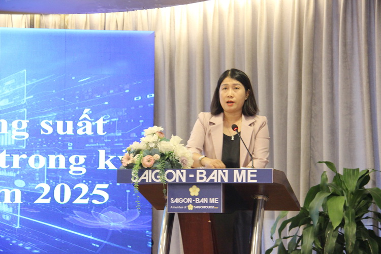Phát biểu khai mạc, bà Lâm Vũ Mỹ Hạnh – Phó Giám đốc Sở KH&CN cho biết: Thực hiện Chương trình quốc gia hỗ trợ doanh nghiệp nâng cao năng suất và chất lượng sản phẩm, hàng hoá giai đoạn 2021- 2030; UBND tỉnh Đắk Lắk và Phú Yên cũ đã ban hành Kế hoạch thực hiện Chương trình giai đoạn 2021-2025. Qua 05 năm thực hiện, tỉnh đã đạt được nhiều kết quả quan trọng như: nhiều doanh nghiệp được hỗ trợ ứng dụng máy móc thiết bị tiên tiến, triển khai xây dựng, áp dụng thành công và được cấp giấy chứng nhận HACCP và VietGap, ISO 9001:2015; hoạt động truy xuất nguồn gốc và phát triển sản phẩm OCOP được đẩy mạnh… Đặc biệt từng bước xây dựng nguồn nhân lực chất lượng cao về năng suất chất lượng, hệ thống quản lý chất lượng tiên tiến, công cụ cải tiến năng suất chất lượng.