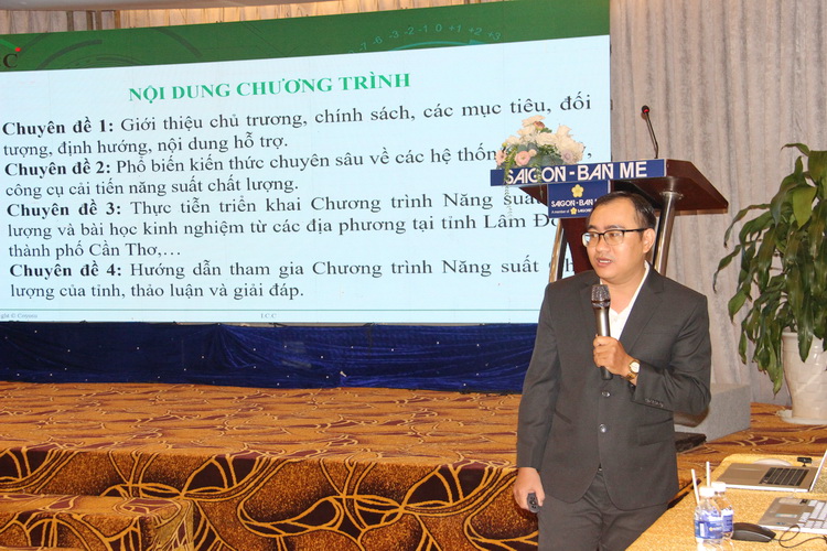 Lớp tập huấn diễn ra trong một ngày, tại lớp tập huấn, đại biểu được các giảng viên của Công ty TNHH Tư vấn Quản lý I.C.C trình bày các nội dung: Giới thiệu chủ trương, chính sách; tổng quan về các hệ thống quản lý chất lượng: ISO 9001, ISO 22000, ISO 14001, ISO 45001, HACCP, Halal...; các công cụ cải tiến năng suất chất lượng: 5S, Kaizen, Lean, TPM, KPI; Các công cụ hỗ trợ sản xuất thông minh, dịch vụ thông minh, trí tuệ nhân tạo AI trong giám sát chất lượng; Giới thiệu kinh nghiệm thực tiễn triển khai Chương trình Năng suất chất lượng từ các địa phương; Hướng dẫn tham gia các nhiệm vụ KH&CN thuộc Chương trình quốc gia hỗ trợ doanh nghiệp nâng cao năng suất và chất lượng sản phẩm, hàng hóa…